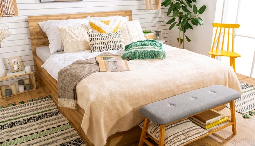 Изголовье кровати обычно выполняется из того же материала, что и каркас. Кровать из дерева или мебельного щита отделывается доской или однородной доской. С другой стороны, мягкие кровати оснащены мягкими изголовьями, покрытыми губкой и тканью, которые могут принимать различные формы, от довольно простых до округлых с элегантной прострочкой. Существуют также модели кроватей, которые, несмотря на жесткий каркас, отделаны мягким изголовьем - для комфорта и более роскошного дизайна.
