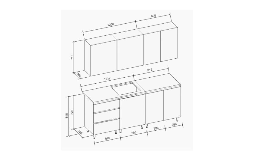 Корпус и фасады выполнены из ДСП толщиной 16 мм, что обеспечивает устойчивость и долговечность конструкции. Рабочая поверхность Torro Cremona толщиной 28 мм отличается прочностью и устойчивостью к ежедневным нагрузкам.